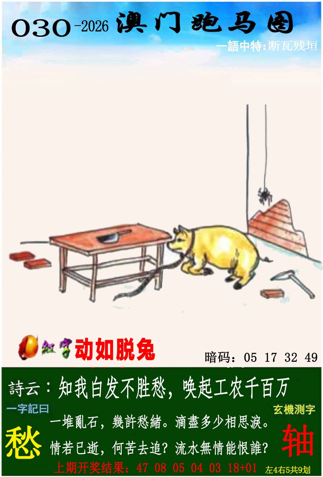 030期红字暗码【动如脱兔】【05 17 32 49】